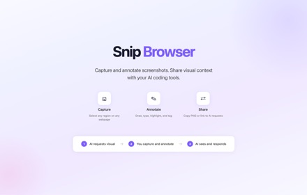 snip-wait --url "https://google.com" \ --reason "change this icon" # AI reads the annotated screenshot # and knows exactly what to fix